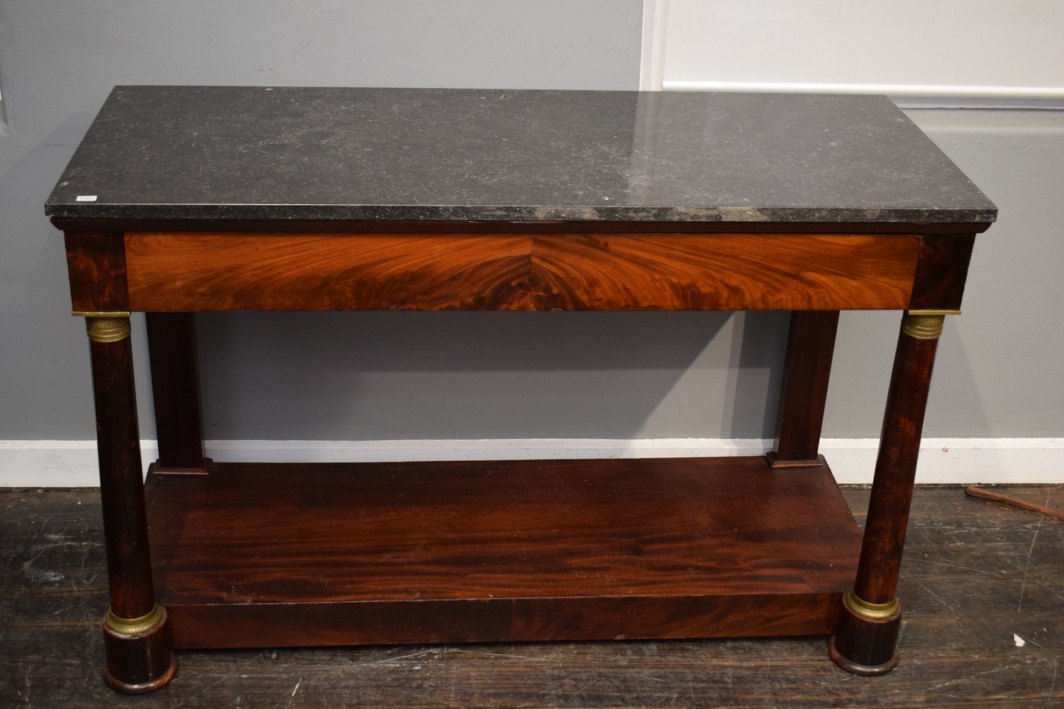 FRENCH EMPIRE PERIOD MAHOGANY CONSOLE TABLE, C.1820'S (A/F) (85H x 131W x 53D CM) (PLEASE NOTE THIS HEAVY ITEM MUST BE REMOVED BY CARRIERS AT THE CUSTOMER'S EXPENSE. LEONARD JOEL STAFF CANNOT ASSIST CARRYING THIS ITEM) (X-LARGE ITEM)