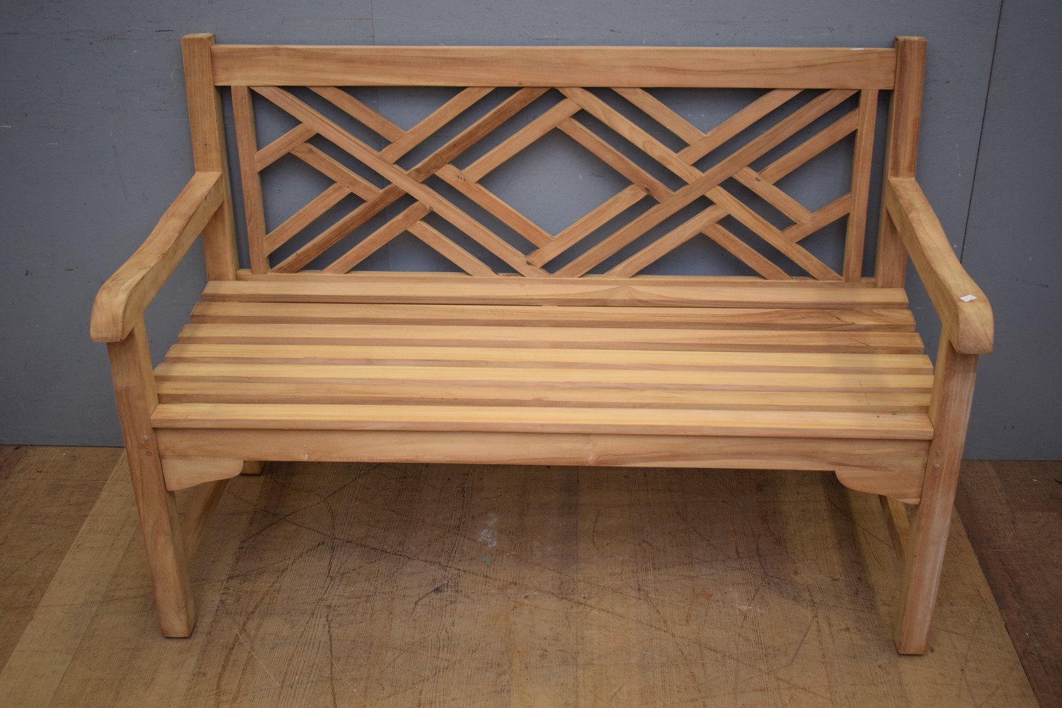A TEAK GARDEN BENCH SEAT ( 90H X 131W X 65D CM) (LEONARD JOEL DELIVERY SIZE: LARGE)