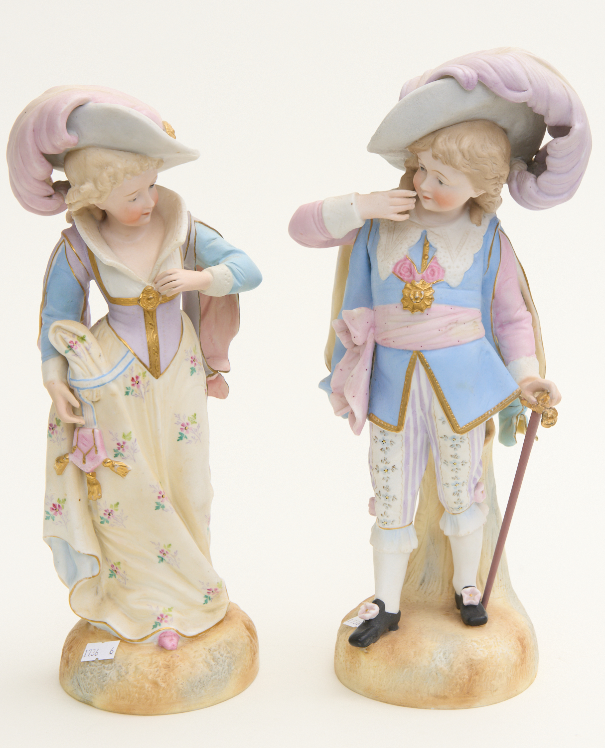 A PAIR OF BISQUE FIGURES (RESTORATION) H.36CM, LEONARD JOEL LOCAL DELIVERY SIZE: SMALL