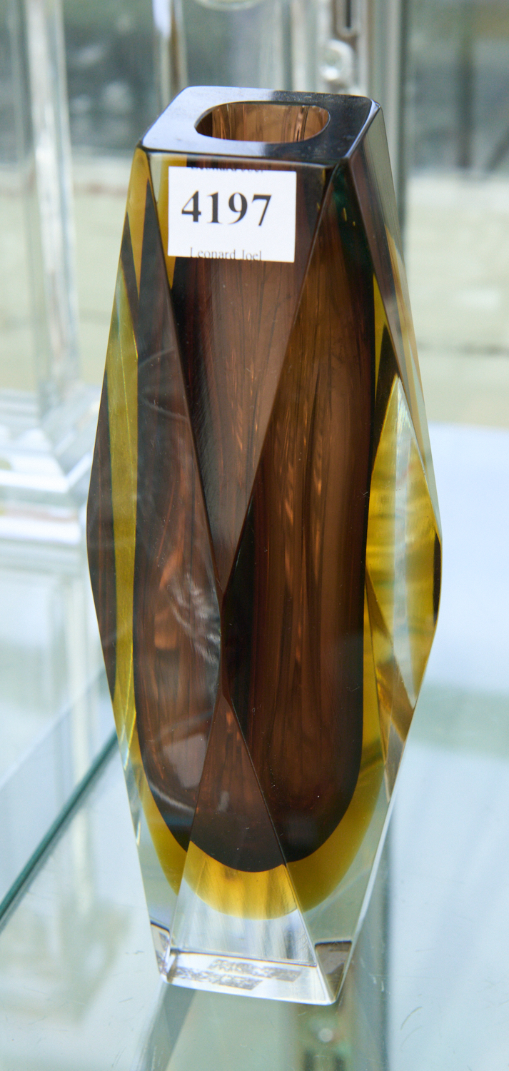 AN ITALIAN FACETED SOMMERSO GLASS VASE 20.5CM, LEONARD JOEL LOCAL DELIVERY SIZE: SMALL