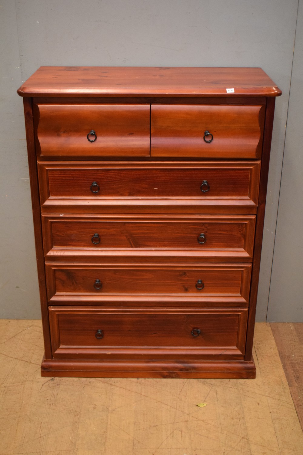 A SIX DRAWER PINE CHEST (A/F) (123H x 92W x 44D CM)VY ITEM MUST BE REMOVED BY CARRIERS AT THE CUSTOMER'S EXPENSE. LEONARD JOEL STAFF CANNOT ASSIST CARRYING THIS ITEM) (X-LARGE ITEM)