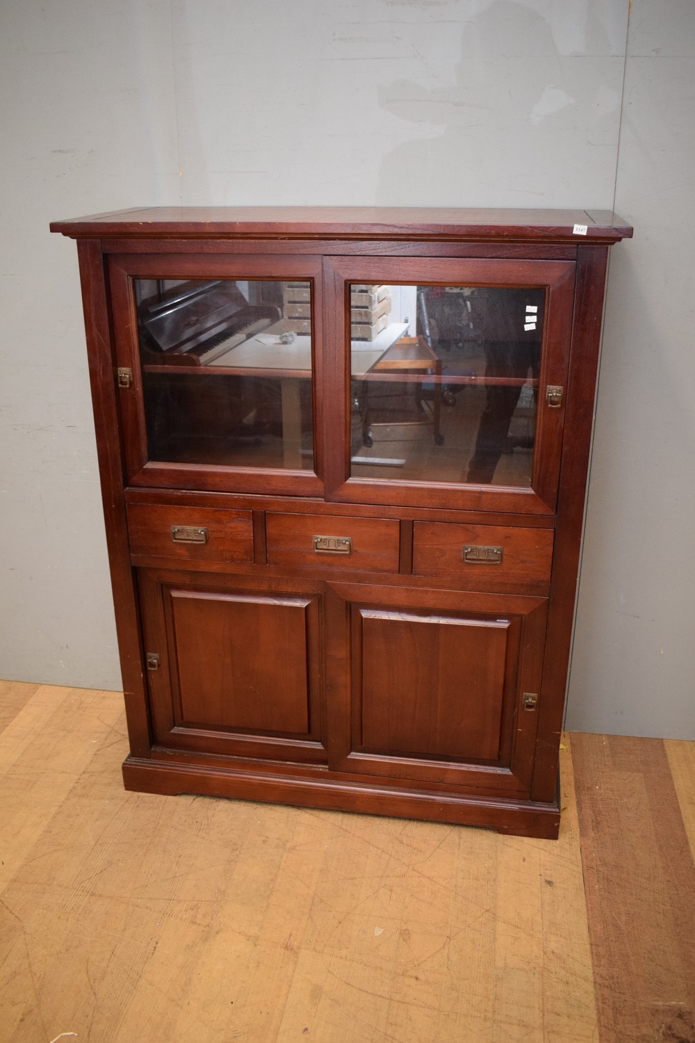A SLIDING DOOR CABINET WITH GLAZED DOORS TO TOP (A/F) x 122W x 51D CM) (PLEASE NOTE THIS HEAVY ITEM MUST BE REMOVED BY CARRIERS AT THE CUSTOMER'S EXPENSE. LEONARD JOEL STAFF CANNOT ASSIST CARRYING THIS ITEM) (X-LARGE ITEM)