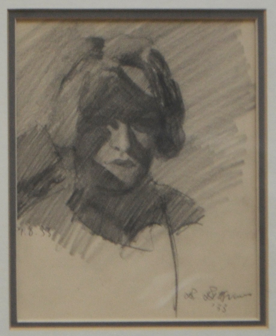 RON REDGRAVE, MRS. THOMPSON AT LUERA 1993, PENCIL ON PAPER, 17.5 X 15CM