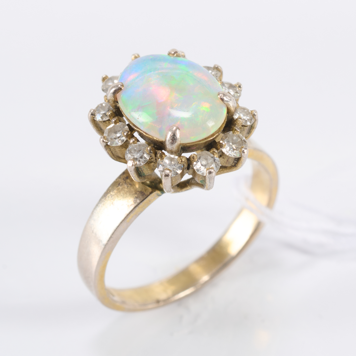 AN OPAL AND DIAMOND RING IN 18CT GOLD, RING SIZE K