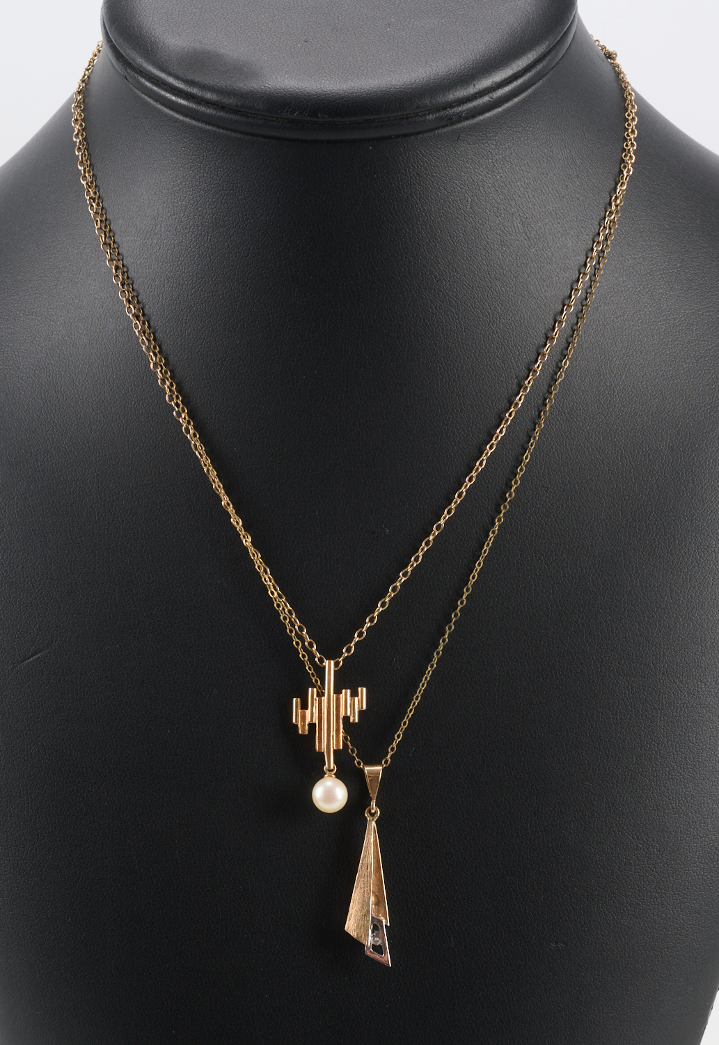 TWO PENDANTS IN 14CT AND 9CT GOLD TO GOLD PLATED FINE CHAINS, EACH NECKLACE LENGTH APPROXIMATELY 42CM, TOTAL PENDANT WEIGHT 2.70GMS