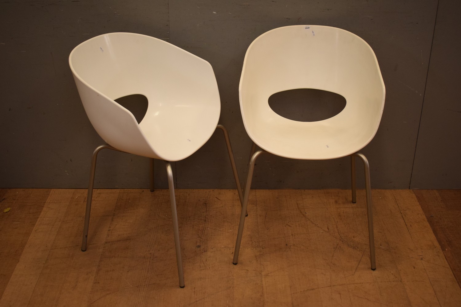 A PAIR OF ITALIAN SINTESI 'LARGE ORBIT' WHITE DESIGNER CHAIRS (81H x 54W x 48D CM) (LEONARD JOEL DELIVERY SIZE: LARGE)