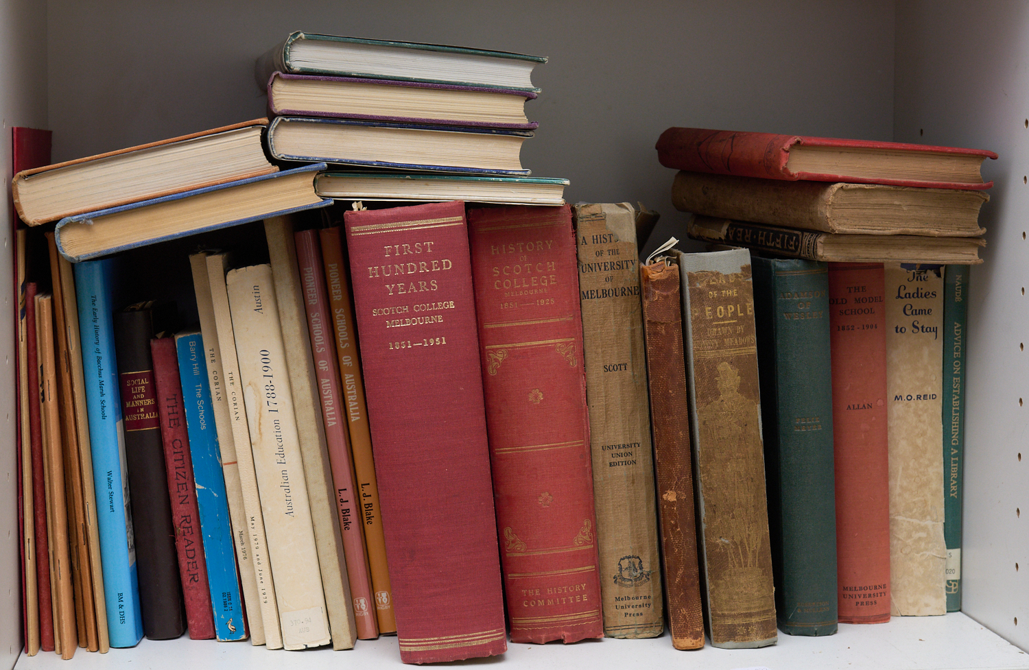 A SHELF OF BOOKS PERTAINING TO SCHOOLS AND SCHOOL HISTORY, LEONARD JOEL LOCAL DELIVERY SIZE: SMALL. The Rodney Permezel Collection