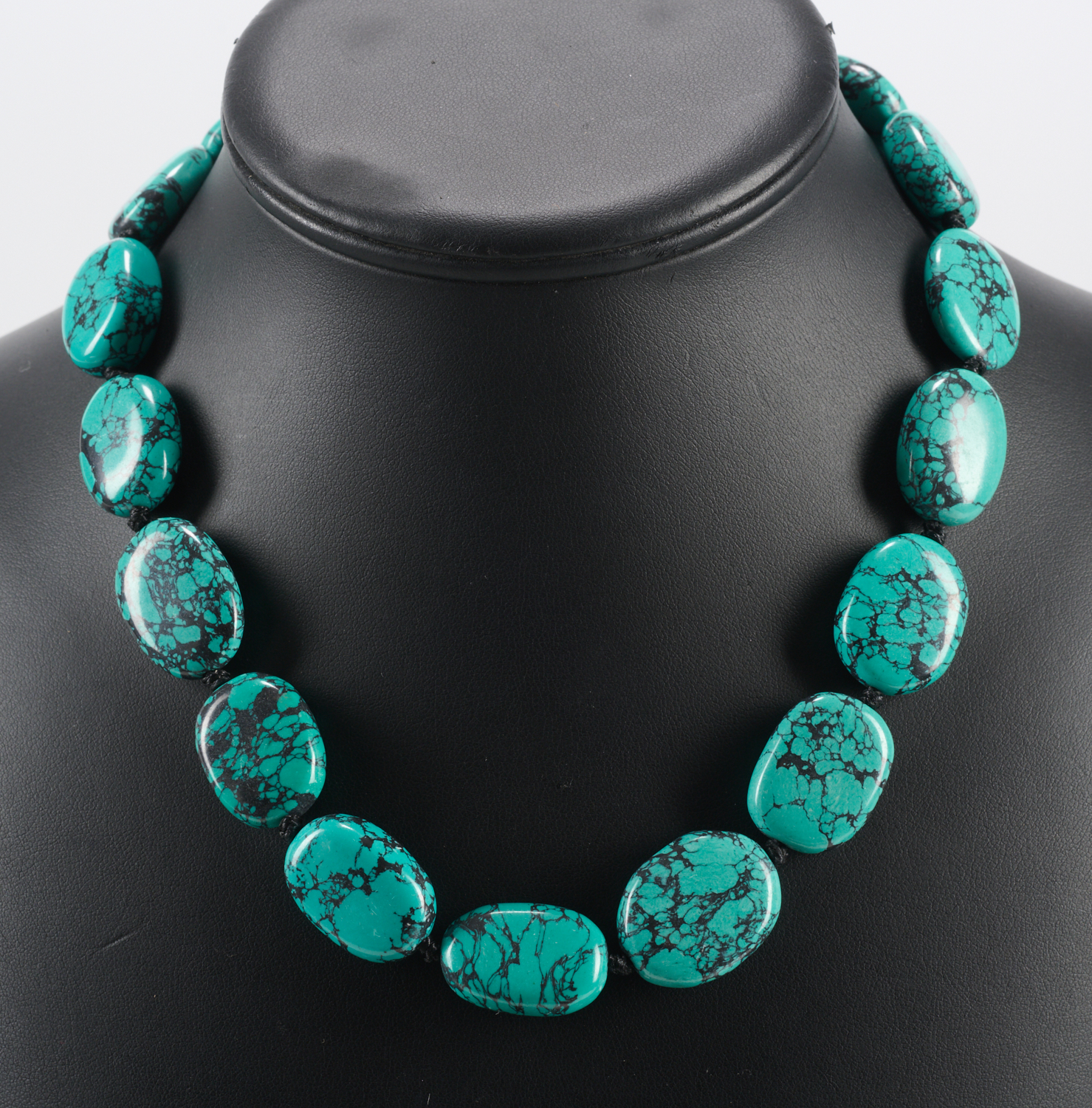 A DYED HOWLITE BEADED NECKLACE , TOTAL LENGTH APPROXIMATELY 470MM
