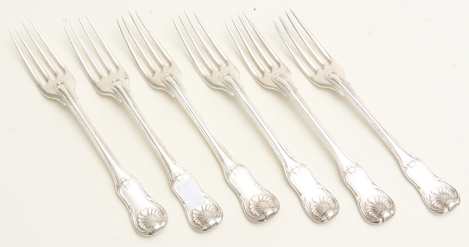 A SET OF SIX FRENCH EARLY 19TH CENTURY SILVER FORKS (630 GMS), LEONARD JOEL LOCAL DELIVERY SIZE: SMALL