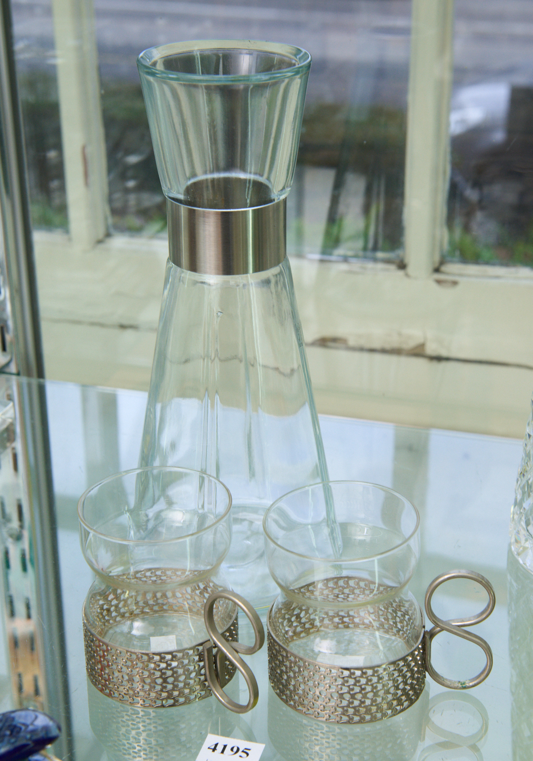 TWO IITALA GLASS AND STEEL GOBLETS TOGETHER WITH A ROSENTHAL DECANTER, LEONARD JOEL LOCAL DELIVERY SIZE: SMALL