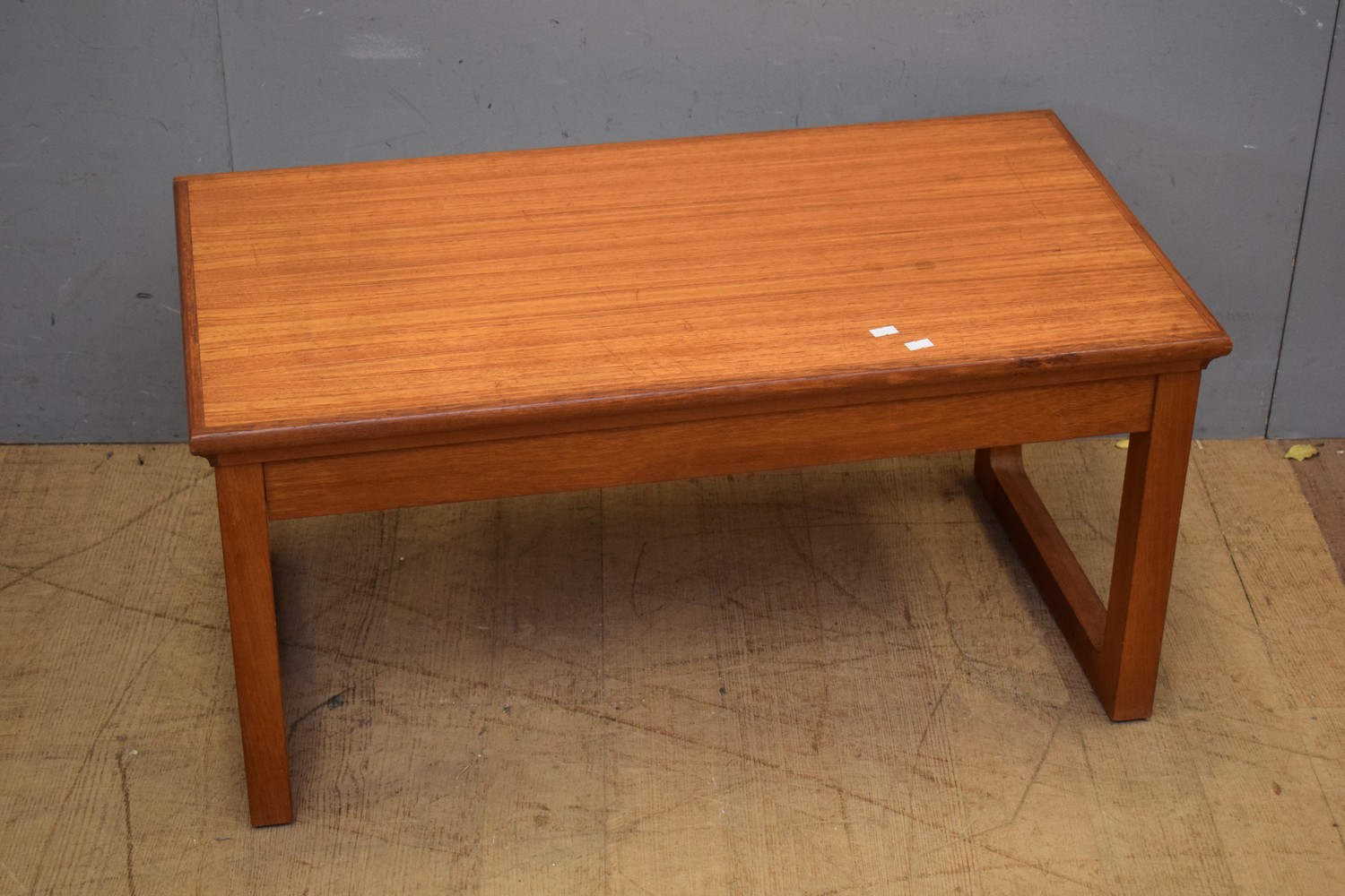 A MID CENTURY TEAK COFFEE TABLE (42H X 85W X 46D CM) (LEONARD JOEL DELIVERY SIZE: LARGE)