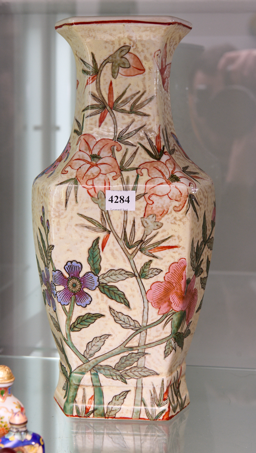 AN ASIAN CERAMIC VASE WITH BUTTERFLY AND FLOWER DECORATION H.36CM, LEONARD JOEL LOCAL DELIVERY SIZE: SMALL. The Rodney Permezel Collection