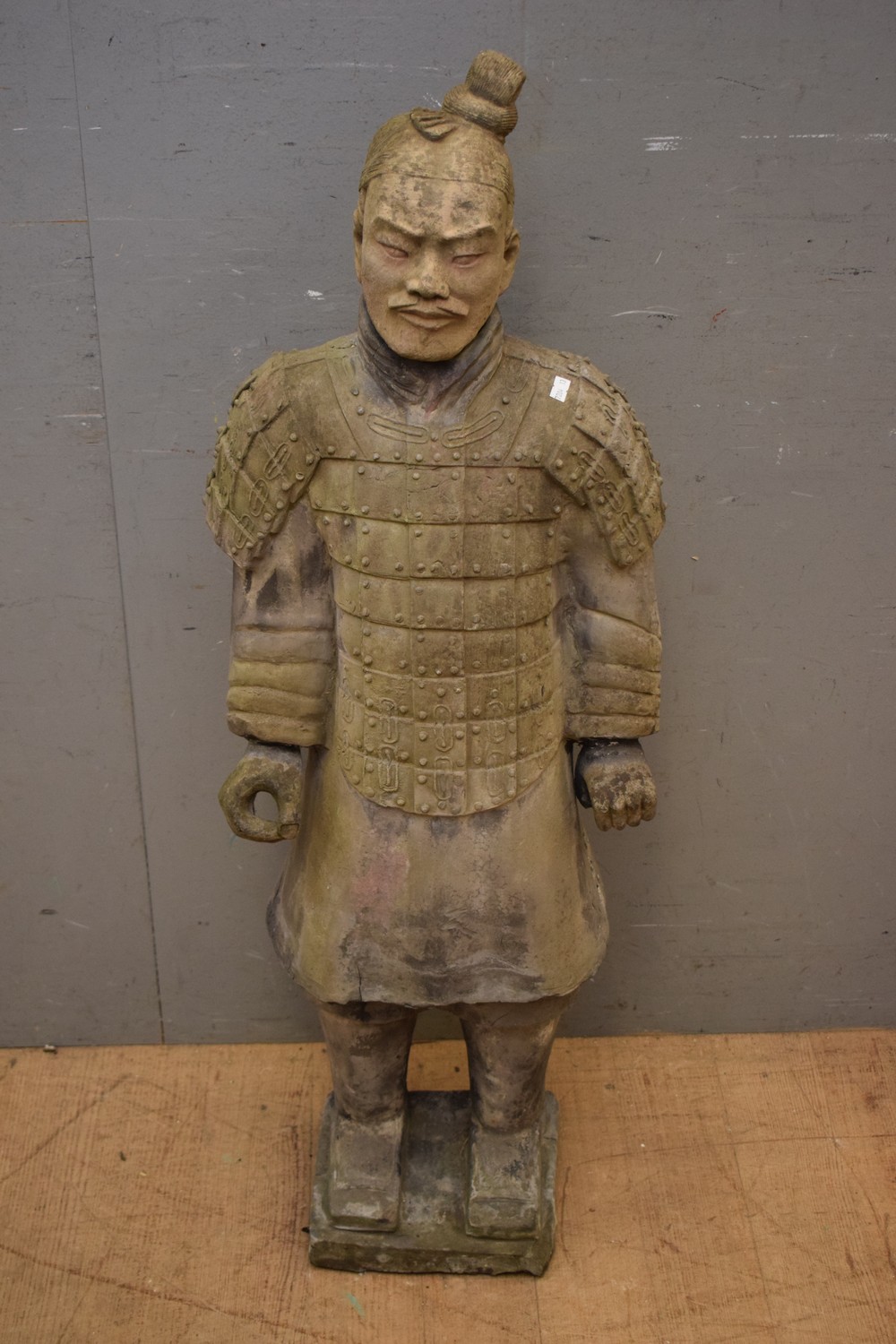 A SUBSTANTIAL CONCRETE GARDEN STATUE (A/F) ( 112H CM) (PLEASE NOTE THIS HEAVY ITEM MUST BE REMOVED BY CARRIERS AT THE CUSTOMER'S EXPENSE. LEONARD JOEL STAFF CANNOT ASSIST CARRYING THIS ITEM) (X-LARGE ITEM)