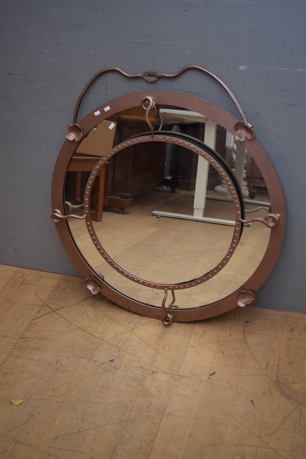 AN ARTISAN MADE WROUGHT IRON FRAMED MIRROR (102D CM) (LEONARD JOEL DELIVERY SIZE: LARGE)