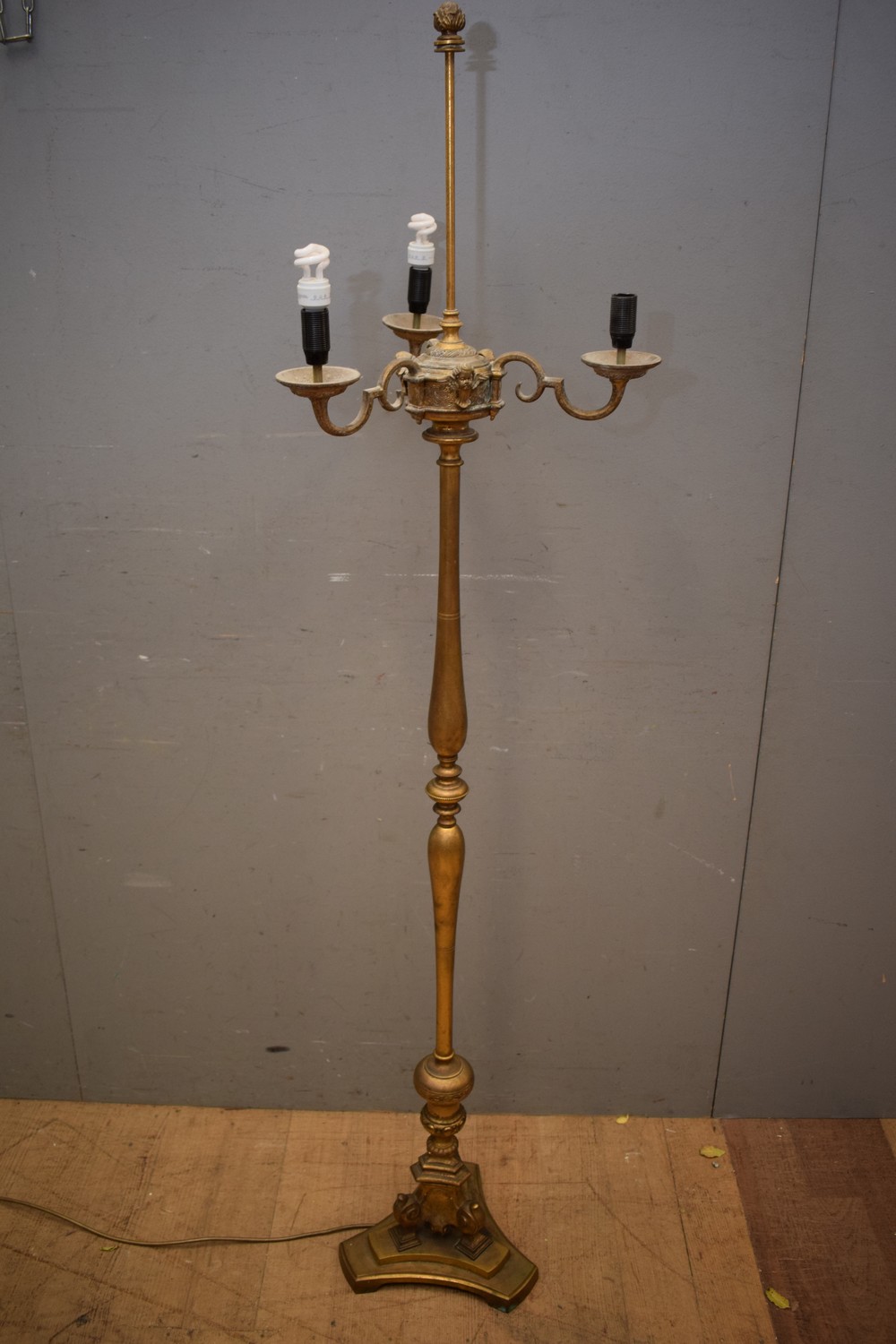 A BRASS THREE BRANCH STANDARD LAMP A/F (UNTESTED EUROPEAN PLUG) (170H CM) (LEONARD JOEL DELIVERY SIZE: LARGE)