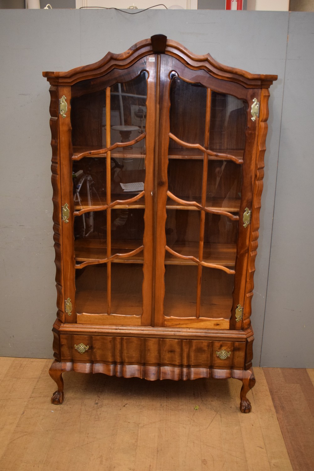 A GLASS FRONTED DISPLAY CABINET ON BALL AND CLAW FEET WITH BRASS DETAILING (193H x 111W x 48D CM) (PLEASE NOTE THIS HEAVY ITEM MUST BE REMOVED BY CARRIERS AT THE CUSTOMER'S EXPENSE. LEONARD JOEL STAFF CANNOT ASSIST CARRYING THIS ITEM) (X-LARGE ITEM)