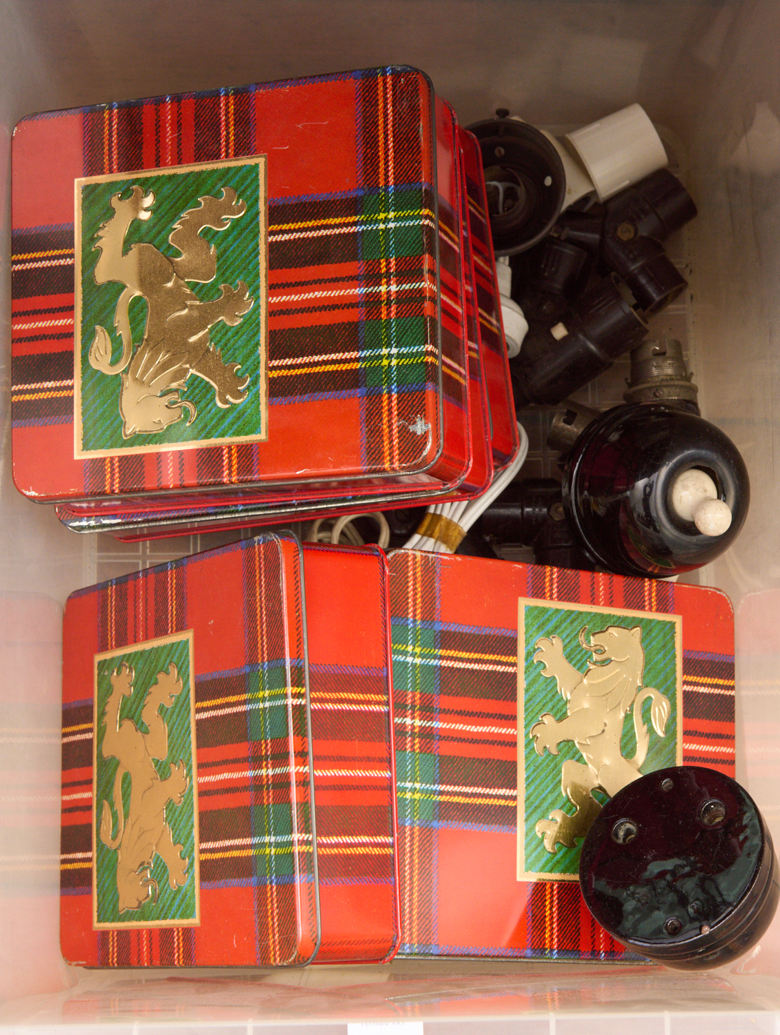 A BOX OF BAKELITE LIGHT FITTINGS, LEONARD JOEL LOCAL DELIVERY SIZE: SMALL. The Rodney Permezel Collection