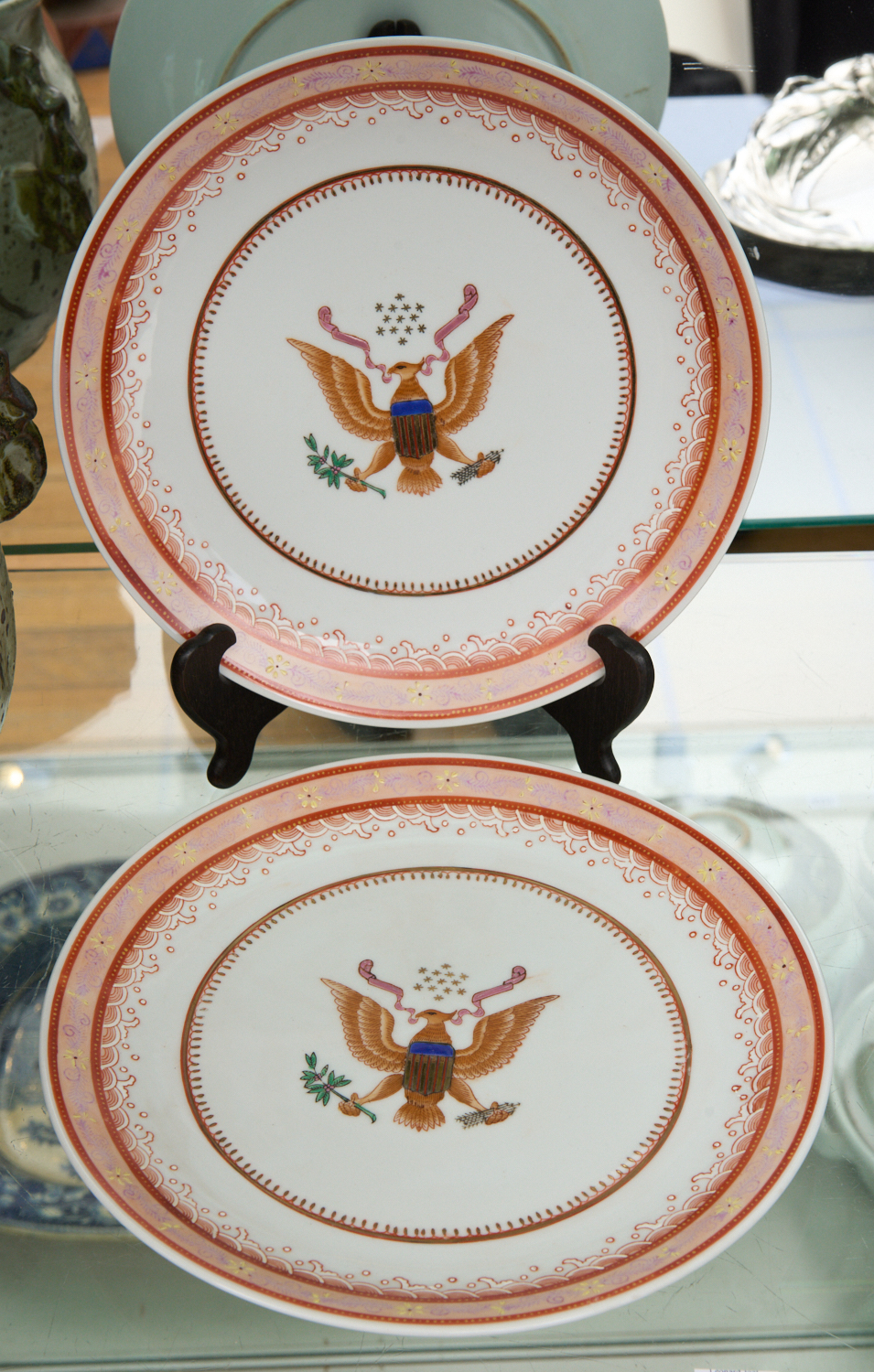 TWO CHINESE EXPORT PLATES WITH ARMORIAL CRESTS, LEONARD JOEL LOCAL DELIVERY SIZE: SMALL. The Rodney Permezel Collection