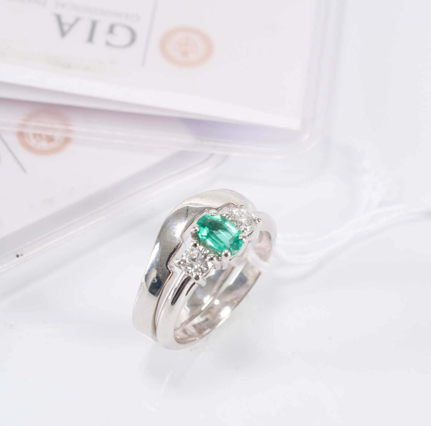 A DIAMOND AND EMERALD RING WITH A FITTED WEDDER IN 18CT WHITE GOLD, RING SIZE M, WITH GIA REPORTS