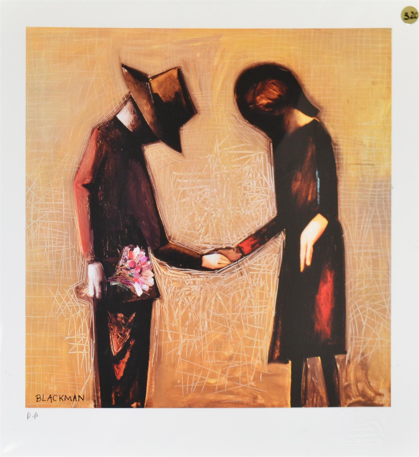A CHARLES BLACKMAN PRINT, HOLDING HANDS, GICLEE PRINT P/P, 33 X 24CM, UNSIGNED
