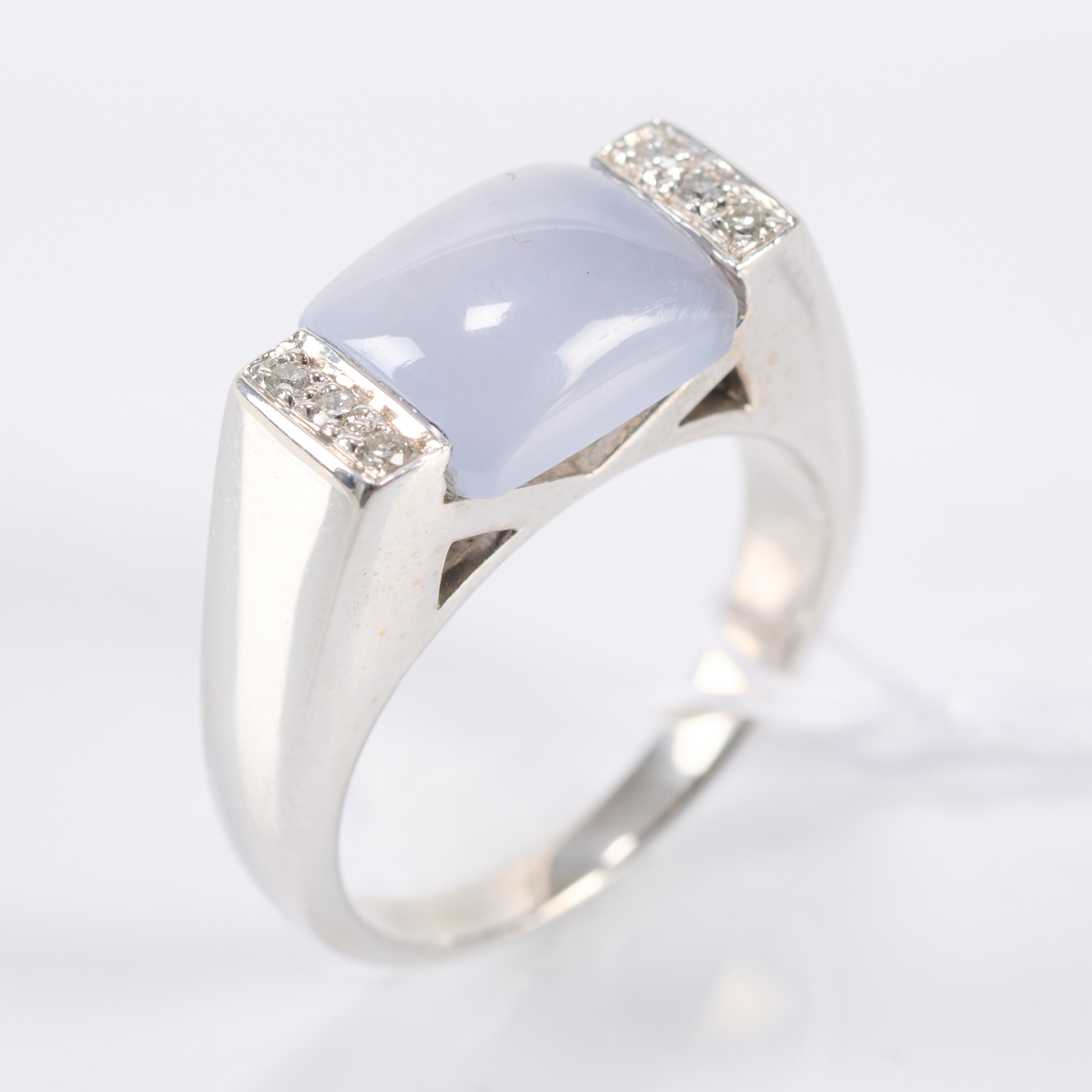 A PURPLE JADE AND PLATINUM RING, RING SIZE O