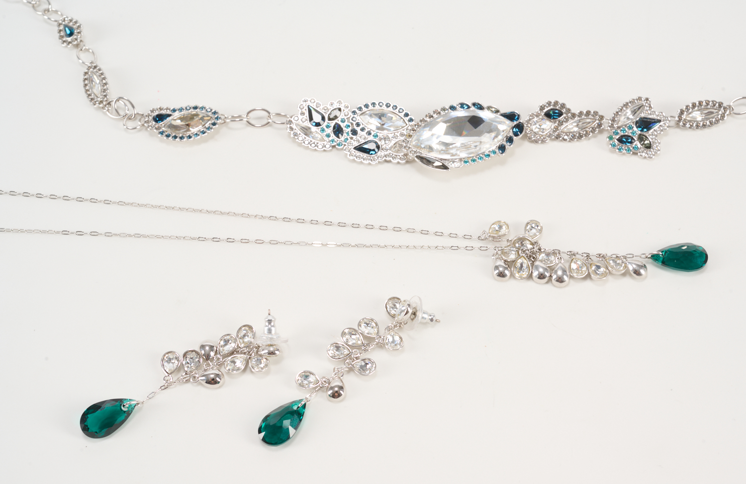 A NECKLACE AND EARRING SUITE TOGETHER WITH A NECKLACE BY SWAROVSKI