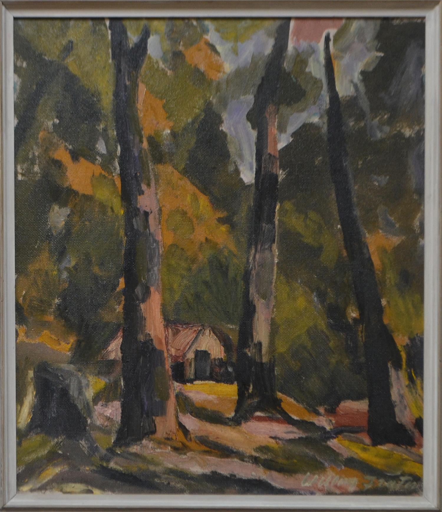 WILLIAM FRATER, THE THREE TREES 1968, OIL ON BOARD, 71 X 61CM