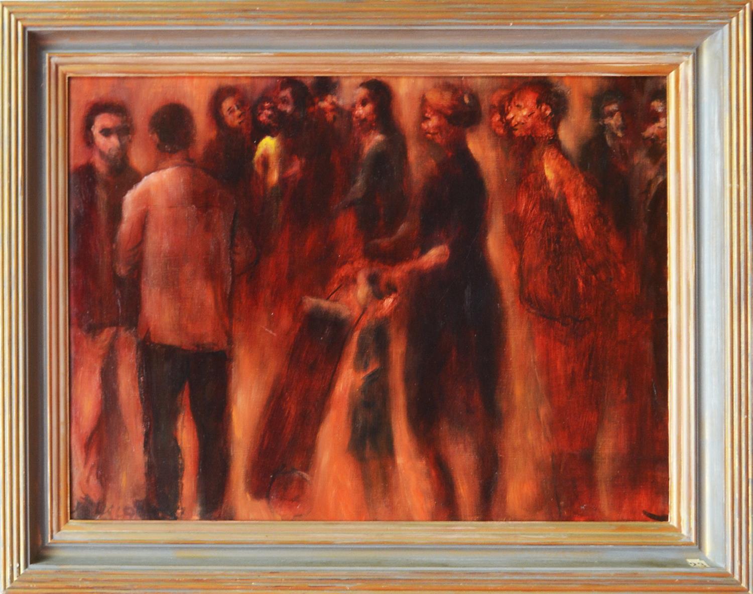 HYMAN SLADE, PRAHRAN MARKET, OIL ON COMPOSITION BOARD, 45 X 60CM