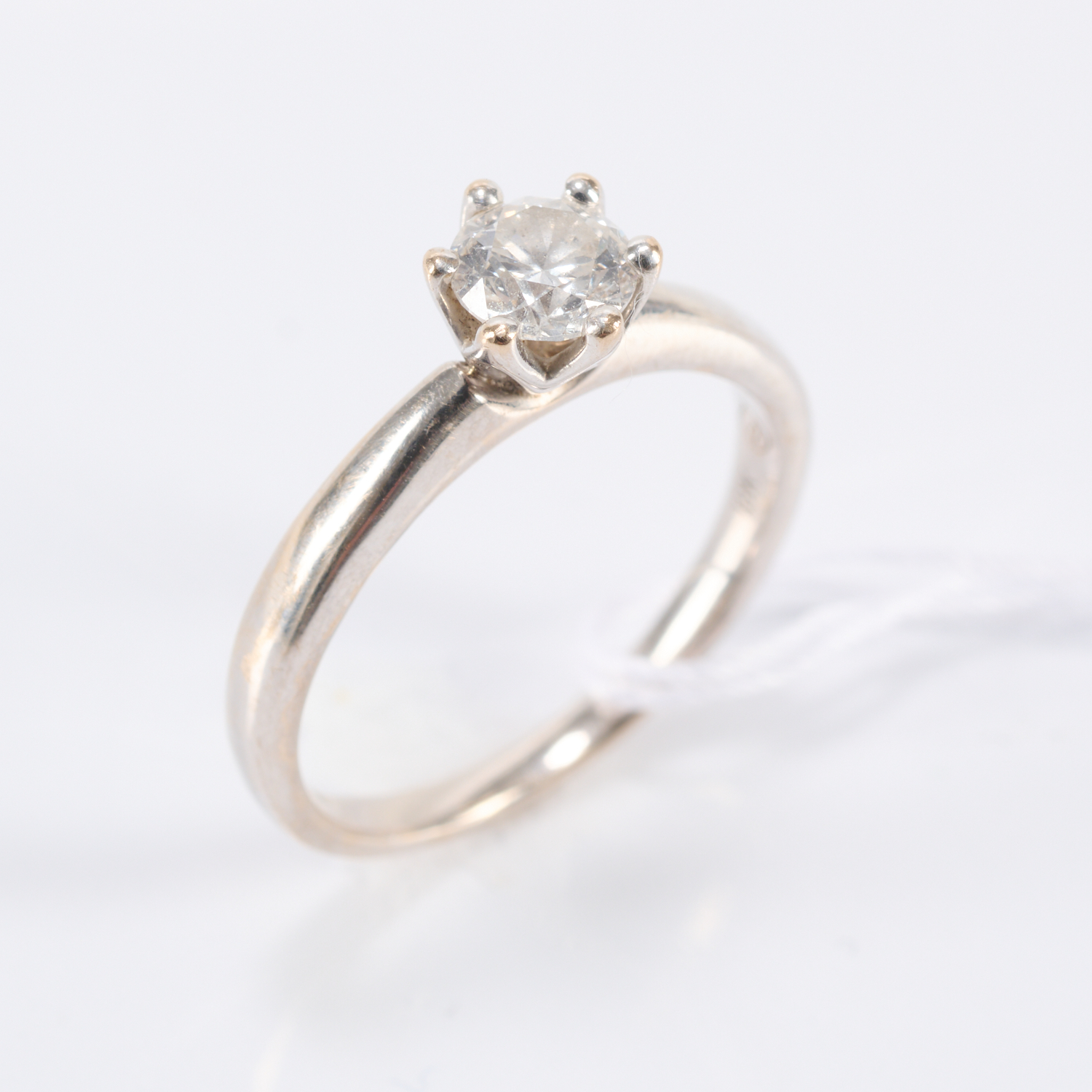 A DIAMOND RING IN 18CT WHITE GOLD, THE DIAMOND APPOXIMATELY 050CTS, RING SIZE L