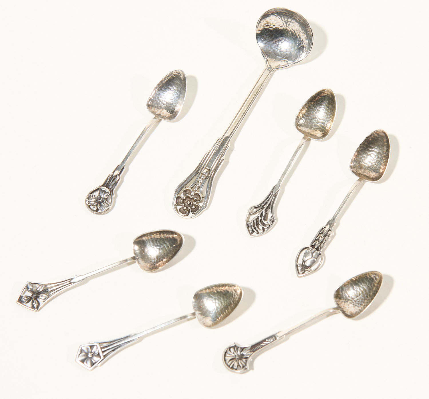 SIX LINTON AUSTRALIAN SILVER COFFEE SPOONS AND A LADLE, LEONARD JOEL LOCAL DELIVERY SIZE: SMALL