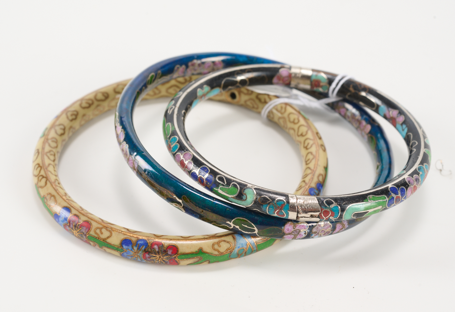 THREE VINTAGE CLOISONNE BANGLES