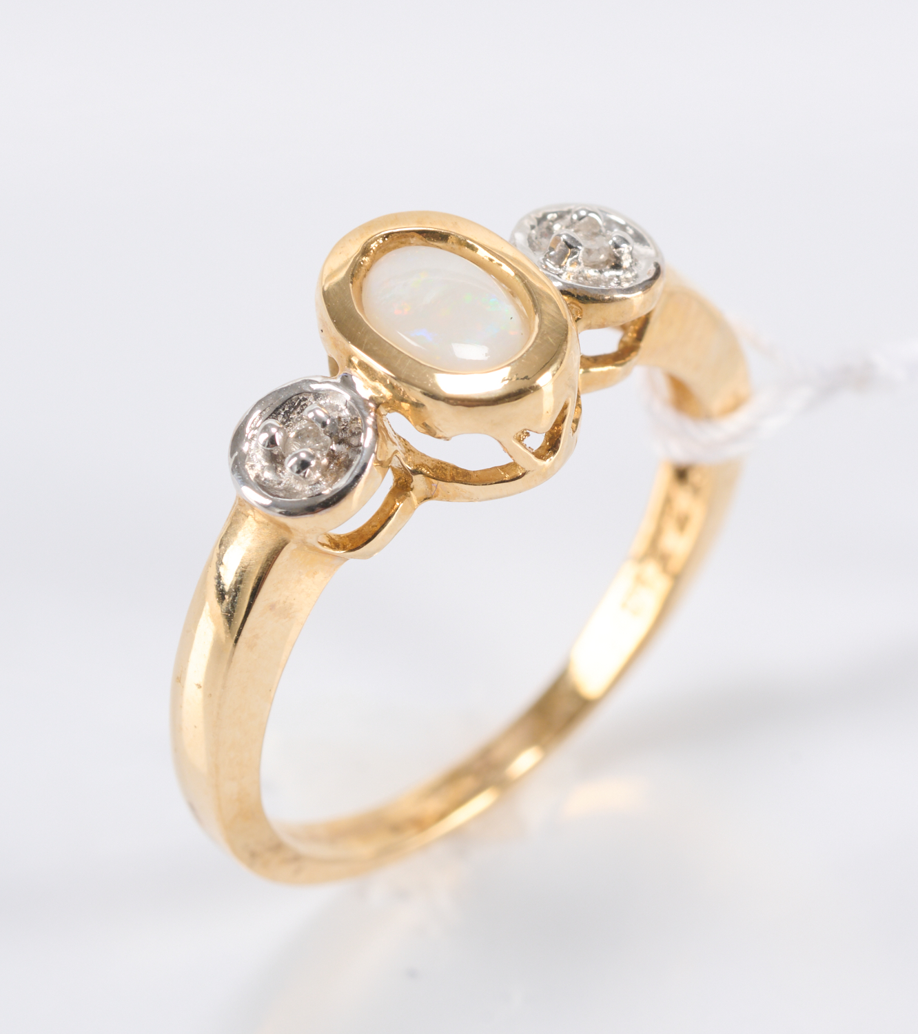 AN OPAL AND DIAMOND RING IN 9CT GOLD, SIZE L, 2.4GMS