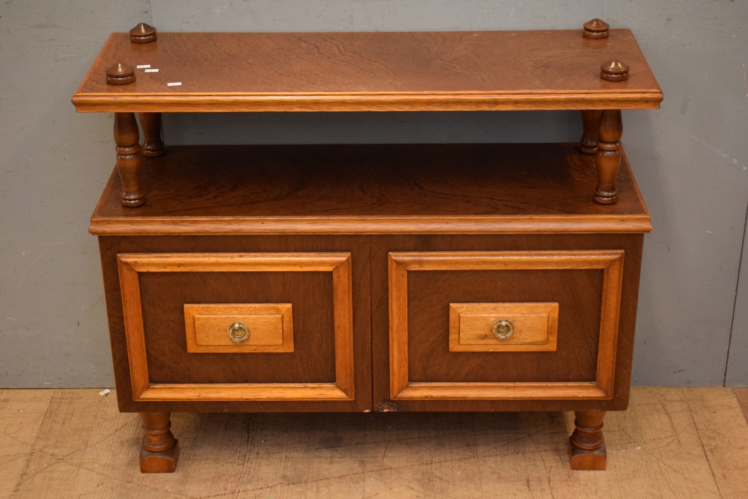 AN OAK TWO TIER CABINET (A/F) ( 76H X 94W X 32D CM) (LEONARD JOEL DELIVERY SIZE: LARGE)