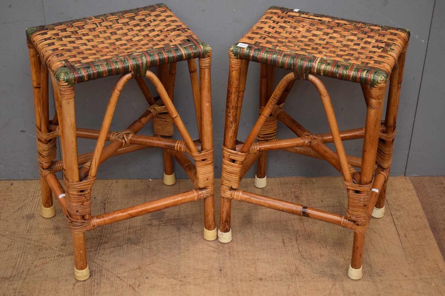 PAIR OF MID CENTURY MULTICOLOURED CANE STOOLS (62H x 40W x 31D CM) (LEONARD JOEL DELIVERY SIZE: LARGE)