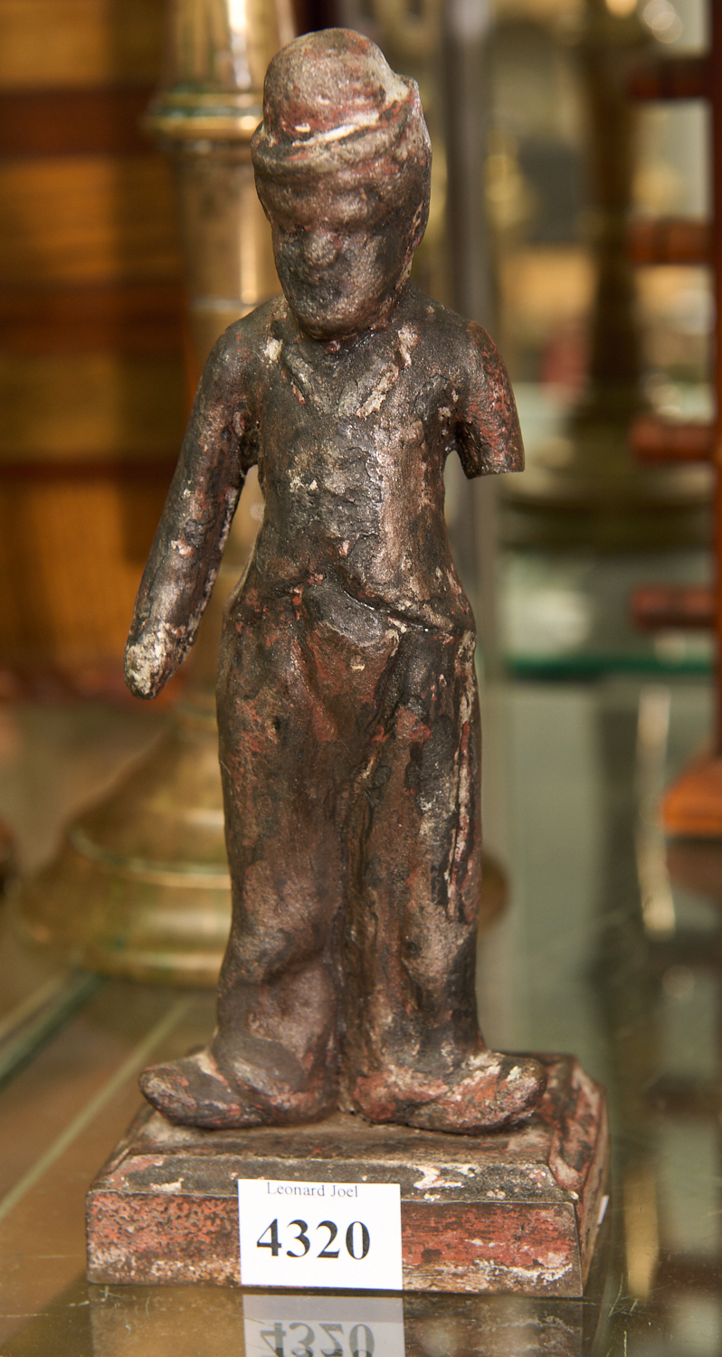 A CAST METAL CHARLIE CHAPLIN FIGURE (A/F) (19 CM H), LEONARD JOEL LOCAL DELIVERY SIZE: SMALL