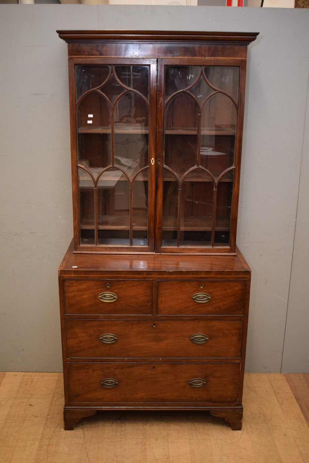 A GEORGIAN DOUBLE BODIED GLASS FRONT BOOK CASE (A/F) (195H x 90W x 54D CM) (PLEASE NOTE THIS HEAVY ITEM MUST BE REMOVED BY CARRIERS AT THE CUSTOMER'S EXPENSE. LEONARD JOEL STAFF CANNOT ASSIST CARRYING THIS ITEM) (X-LARGE ITEM)