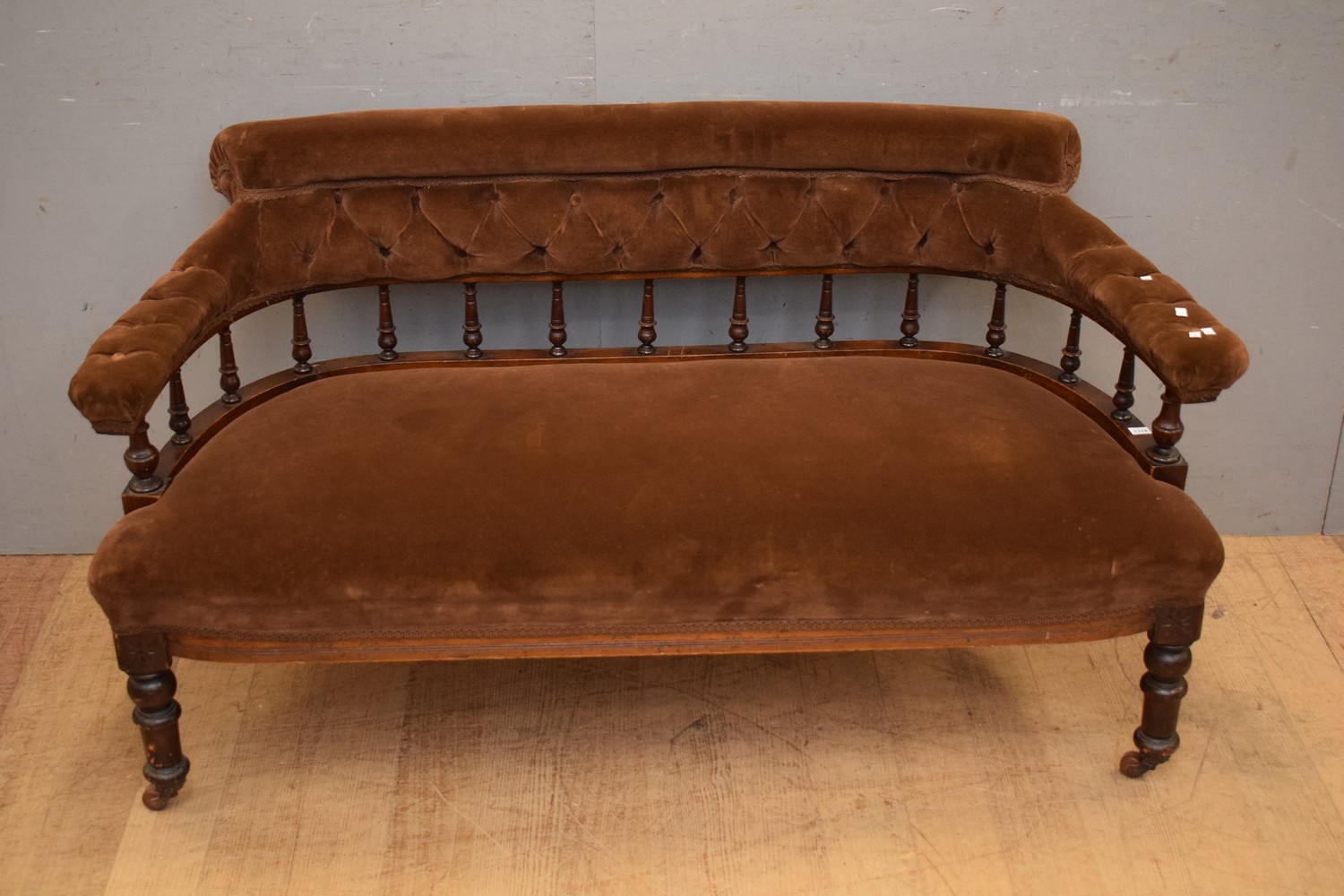 A VICTORIAN TWO SEATER SETTEE (A/F) (72H x 135W x 60D CM) (LEONARD JOEL DELIVERY SIZE: LARGE)