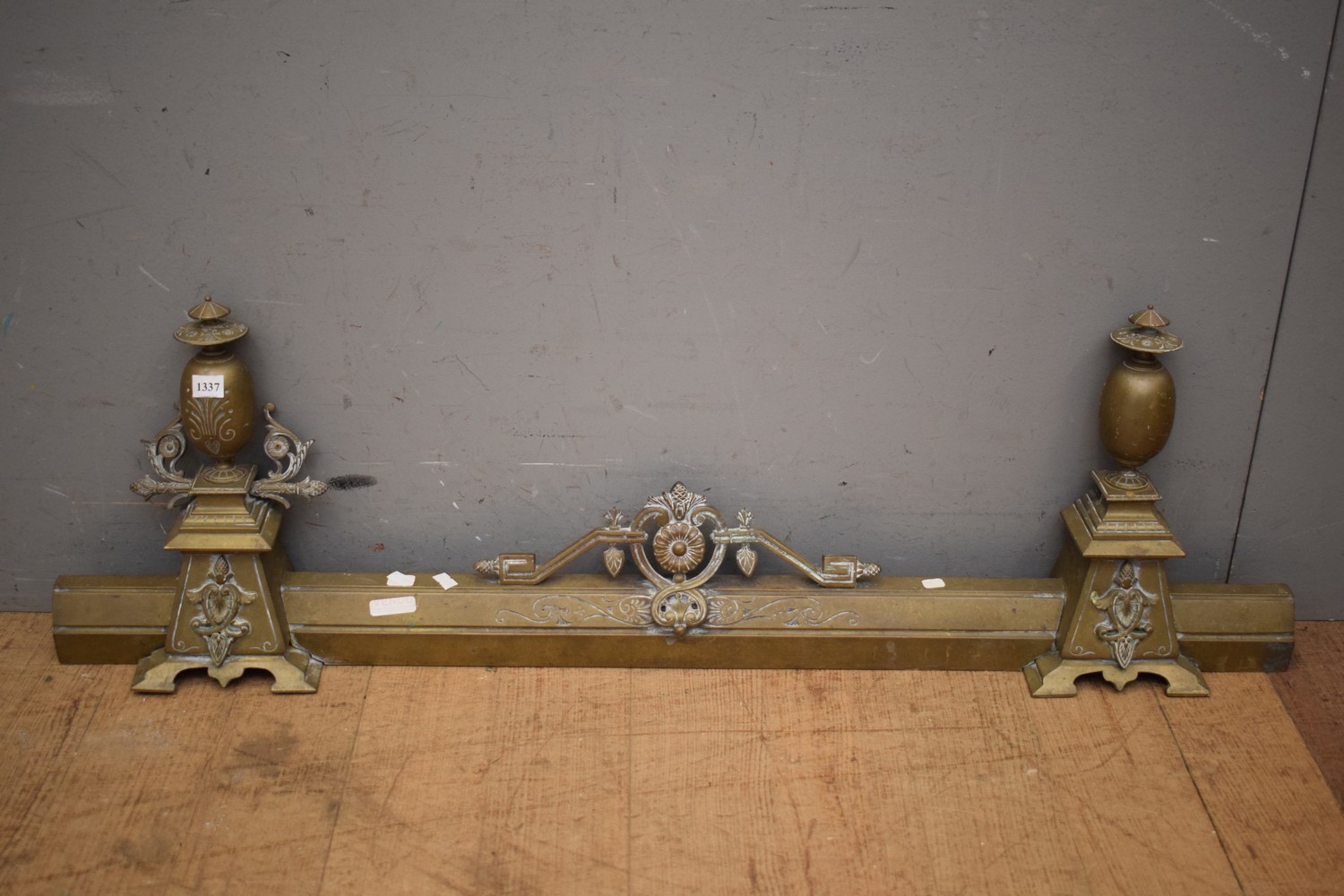 A FRENCH BRASS FIRE FENDER (34H x 103W CM) (LEONARD JOEL DELIVERY SIZE: MEDIUM)