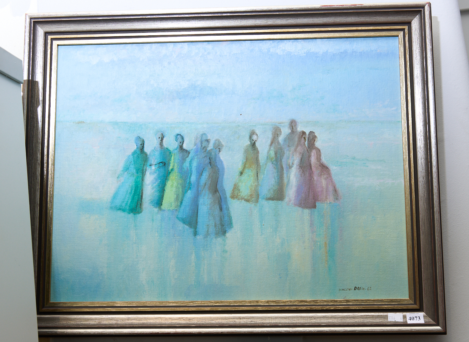 WILLIAM DREW OIL PAINTING 1982 "BEACH FIGURES" (68W x 52.5 CM ), LEONARD JOEL LOCAL DELIVERY SIZE: SMALL