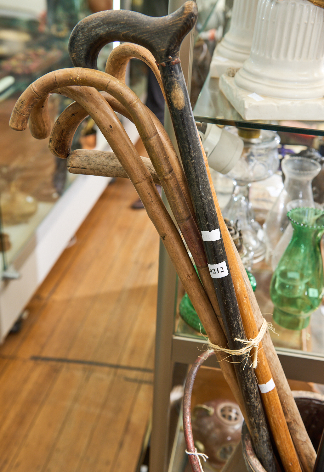 A GROUP OF SIX WALKING STICKS, LEONARD JOEL LOCAL DELIVERY SIZE: SMALL