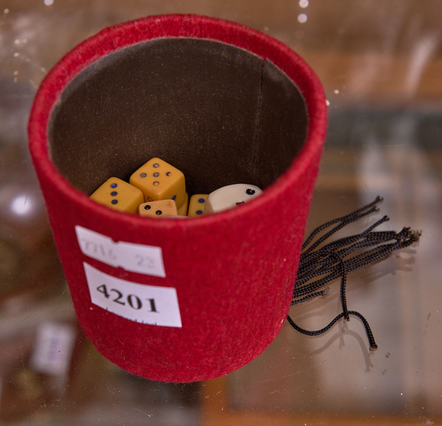 A MINIATURE FEZ WITH DICE (H.7.5CM), LEONARD JOEL LOCAL DELIVERY SIZE: SMALL