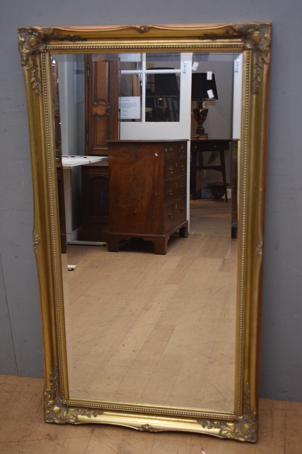 A LARGE DECORATIVE GILT EFFECT WALL MIRROR ( 133H X 74W CM) (LEONARD JOEL DELIVERY SIZE: LARGE)