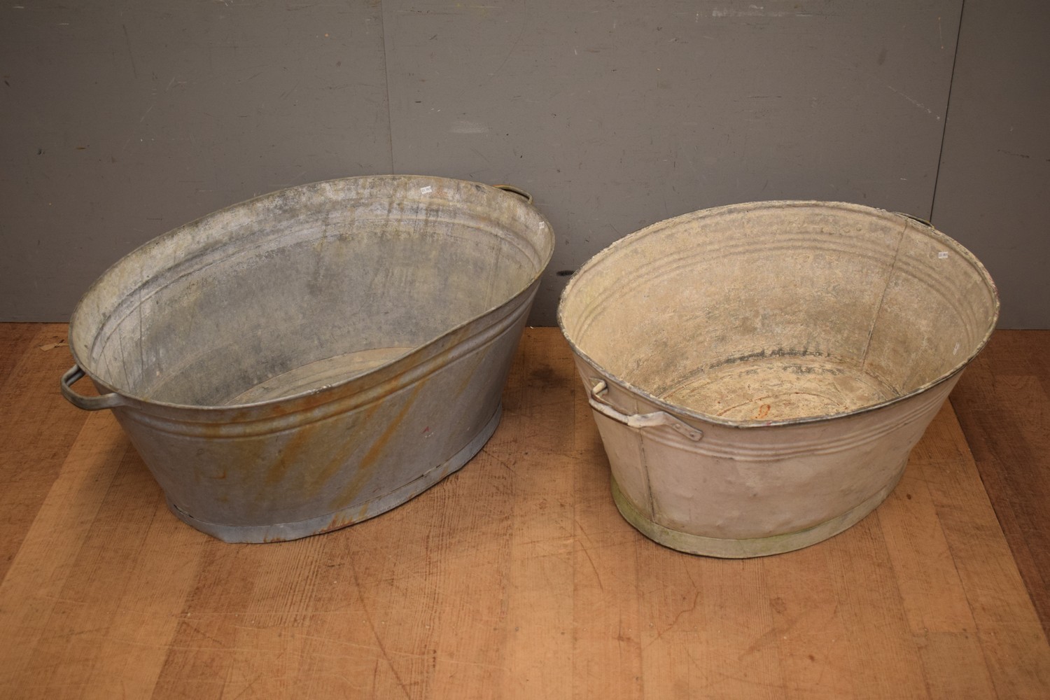 TWO FRENCH GALVONISED OVAL BATHS/TUBS (38H x 102W x 68D CM) (LEONARD JOEL DELIVERY SIZE: LARGE)