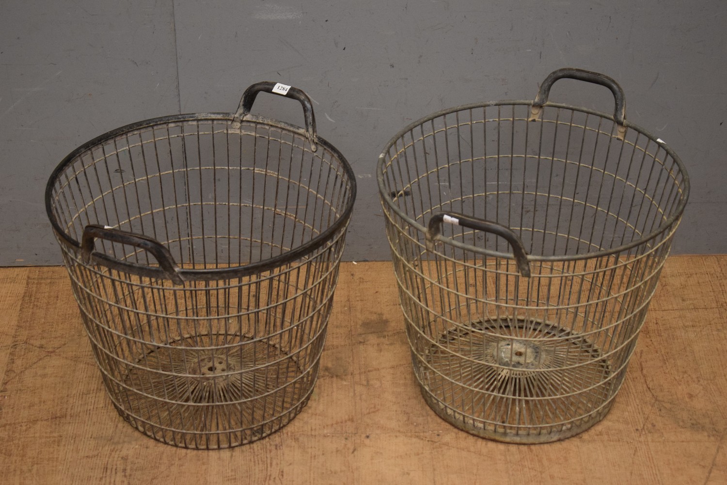 PAIR OF GALVANISED IRON FRENCH WIREWORK FRUIT BASKETS (43H x 47D CM) (LEONARD JOEL DELIVERY SIZE: LARGE)