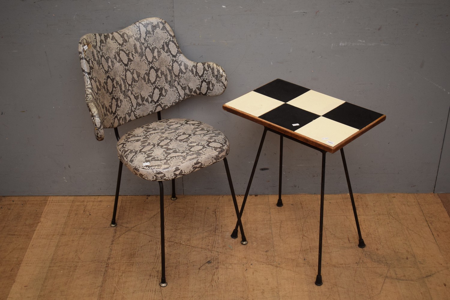 A VINYL COVERED CHAIR AND TILE TOPPED STEEL FRAMED COFFEE TABLE (TABLE 59H x 47W x 32D CM) (LEONARD JOEL DELIVERY SIZE: MEDIUM)