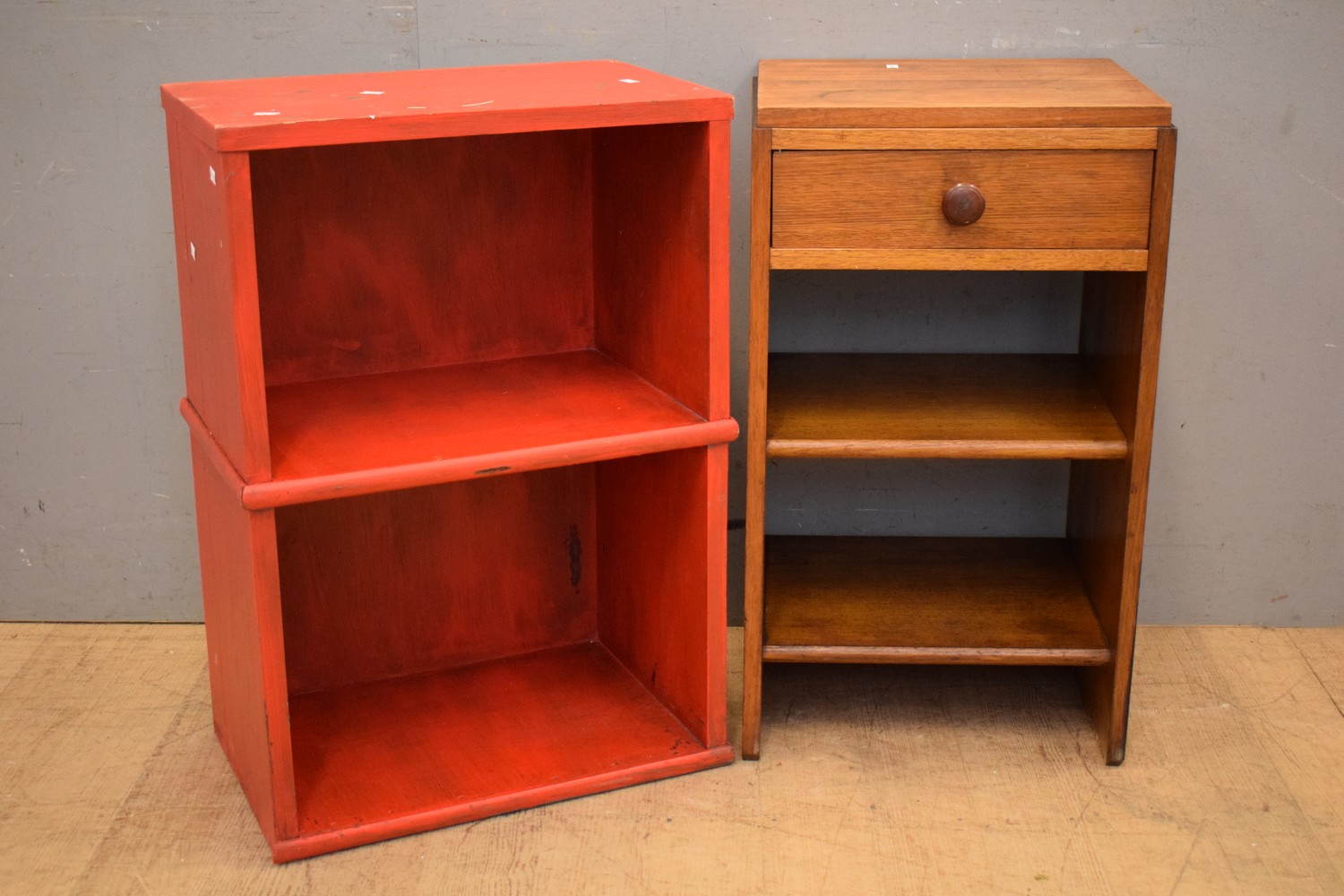 TWO SOLID WOODEN AUSTRALIAN SIDETABLES - ONE RED AND ONE WITH DRAWER (A/F) (70H X 48W X 32D CM) (LEONARD JOEL DELIVERY SIZE: LARGE)