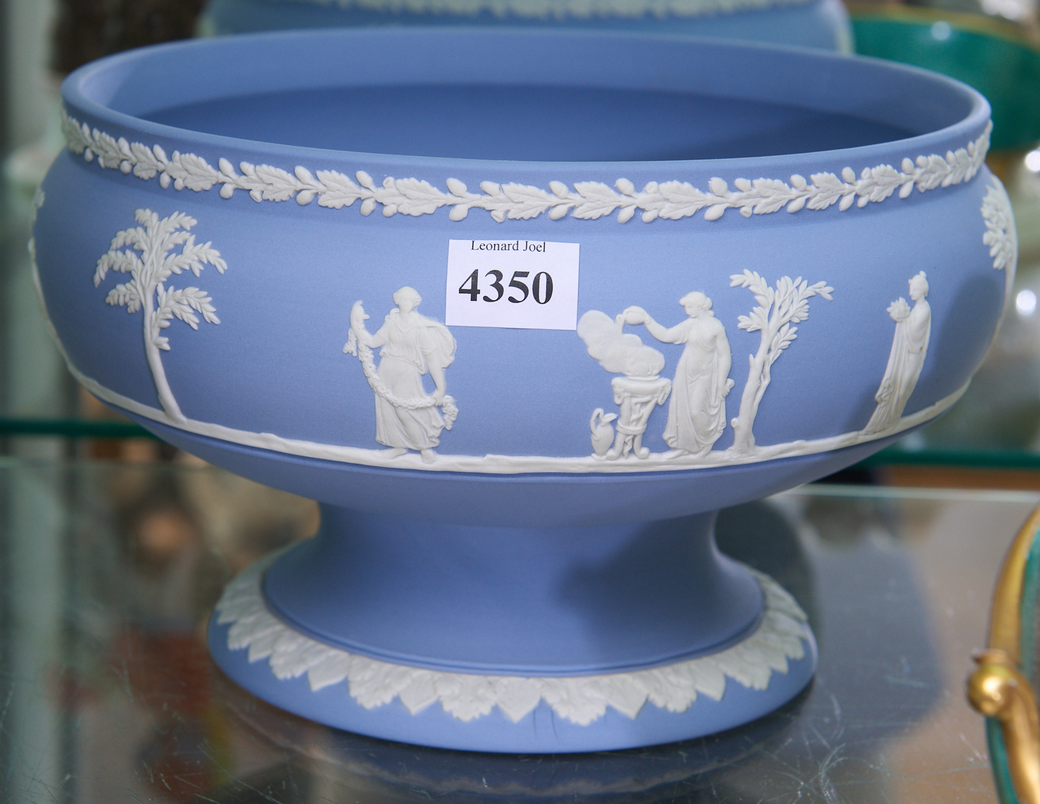 A BLUE WEDGEWOOD JASPERWARE COMPORT, LEONARD JOEL LOCAL DELIVERY SIZE: SMALL