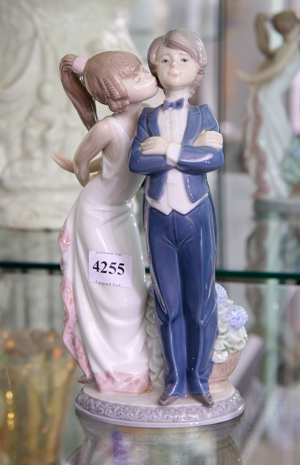 LLADRO FIGURINE OF A GIRL KISSING A BOY H 20CM, LEONARD JOEL LOCAL DELIVERY SIZE: SMALL
