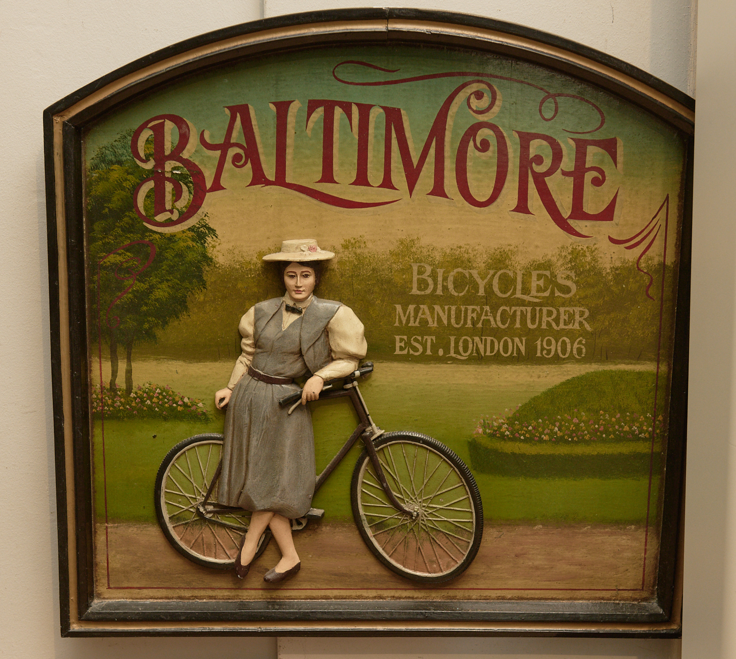BALTIMORE BICYCLES MANUFACTURER, LONDON SIGN H 58CM X W 59CM, LEONARD JOEL LOCAL DELIVERY SIZE: SMALL