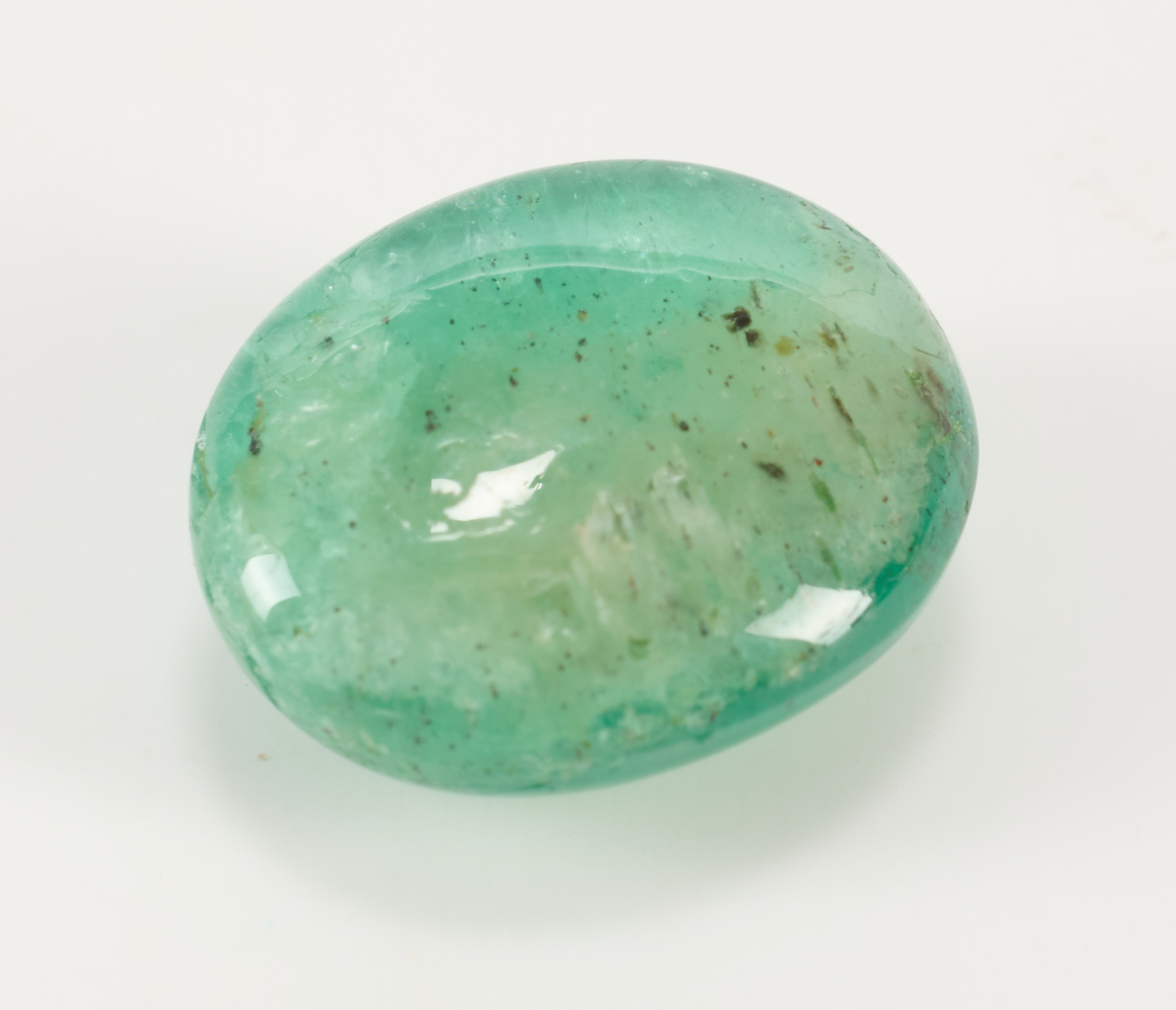 ONE LOOSE NATURAL GREEN EMERALD, 5.27CT, 12.3 X 9.8 X 5.9MM CUT EN CABOCHON